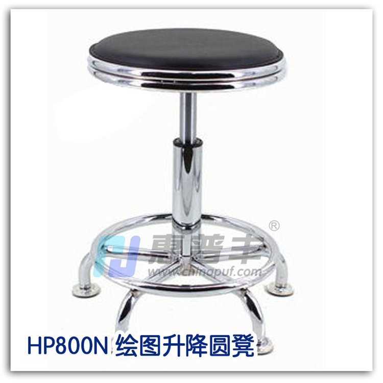 采用黑色皮质内衬硬海绵凳座面,采用钢管支架,管身钢材厚度为1mm镀铬处理;底坐为五锥脚(分为移动脚和固定脚二种),平稳牢固,高度为45-53cm,适合制图实训教室常用凳子之一。